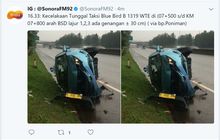 Sebuah taksi Blue Bird bernomor polisi B 1319 WTE mengalami kecelakaan ruas Tol Jakarta-Serpong Km 07+500-07+800 arah BSD.