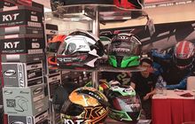 Di booth Jakarta Helmet Gallery menjual berbagai apparrel seperti helm, salah satunya dari helm model full face merek KYT