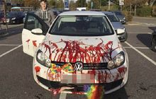 Barber Mark Bain, pemuda asal Skotlandia ini memodifikasi mobil Volkswagen Golf nya dengan tema Halloween