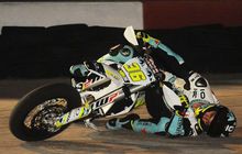 Pembalap MotoGP kelas Moto3 Joan Mir dari Spanyol menikung dengan Honda CRF450 supermoto sampai head down pada 4 November 2017 di sirkuit Mallorca