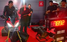 Drag bike di Honda Speed Challenge di atas mesin simulasi kecepatan layaknya drag race dengan total hadiah uang tunai senilai Rp. 6.000.000