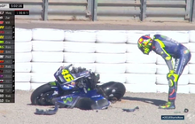 Tonton Nih Ekspresi Bingungnya Valentino Rossi Melihat Motornya Hancur