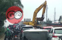 Gokil! Tanpa Dosa Backhoe Ini Jalan Lawan Arus di Tengah Kemacetan Daerah Cibubur