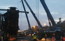 Rambu Variable Message Sign (VMS) roboh di kilometer 15 Tol Jakarta-Cikampek, Kamis tengah malam (16/11/2017).