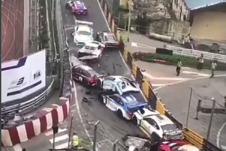 Sesi kualifikasi kejuaraan dunia roda empat FIA GT di Makau hari Sabtu (18/11/2017) dihentikan sementara setelah terjadi tabrakan beruntun.