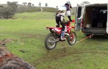 Pada umumnya, orang akan menaikkan motor trail ke atas pick up tidak perlu dengan cara yang aneh-aneh.