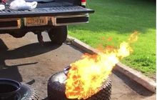 Disemprot, Dibakar Lalu Ditiup, Unik Juga Cara Pasang Ban Ini