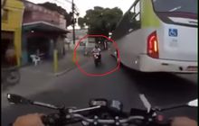 Horor, Pengendara Motor Bangkit Lagi Setelah Tergilas Bus!