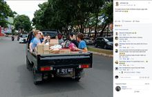 Kocak, Enggak Anak Sekolah Saja yang Naik Mobil Bak, Bule Ini Juga