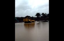video yang diunggah oleh akun Agus Subagya via Facebook Agus Subagya, yang memperlihatkan truk yang terguling saat menerjang banjir