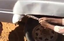 Apa yang bakal kamu lakuin kalau ada sesuatu yang mengganjal roda belakang mobil kamu? Tapi bukan lilitan tali yang menghambat perjalanan kamu