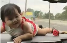 Bayi yang imut-imut diajak naik mobil dan ditaruh di dashboard