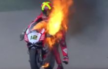 Memacu motor dalam kecepatan tinggi merupakan 'makanan' para pembalap dunia. Tiba-tiba motor terbakar hebat saat tengah digas.