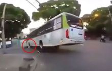 Tonton! Punya 7 Nyawa, Pemotor Ini Masih Bisa Jalan Usai Dilindas Bus