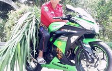 Pria Ini Pakai Kawasaki Ninja 250 Untuk Menyabit Rumput, Jare Nek Ora Ninja Ora Dicinta?