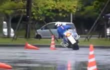 Keren! Polisi Ini Berani Meliuk-Liuk Pakai Moge Di Tengah Hujan