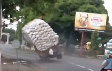 Kelebihan Muatan, Truk Ini Oleng dan Roboh Mirip Orang Mabuk Miras