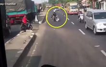 Video Pemotor Berani Hadang Bus yang Mau Lawan Arah di Cikampek
