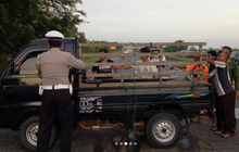 Suzuki Carry Pikap Terguling di Tol Merak, Kelapa Berserakan di Jalan