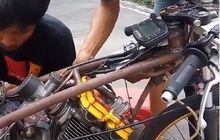 Motor drag bike identik dengan rangkanya yang pendek. Bukan dari sononya lo ya Sob, tetapi pendek karena sengaja dipotong.