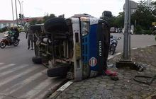 Duh, Akibat Terobos Lampu Merah, Angkot Ini Terbalik