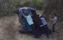 Kocak! Gotong Royong Membalikkan Pikap Malah Bikin Melongo