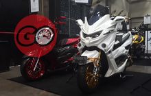 Gaya modifikasi NMAX di Customaxi Yamaha Makassar 2018 banyak mengadopsi aliran sport touring dengan pemilihan part yang fungsional dan nyaman