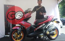 Ini juara Customaxi Yamaha Makassar 2018 kelas Aerox 155 VVA dengan ubahan warna feminin dan suspensi monoshock