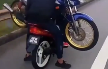 Ada pemandangan fenomenal nih, sebuah Yamaha RX-Z digendong pake motor bebek di jalan tol. Kok bisa yah?