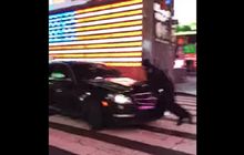 Sebuah Mercedes-Benz C63 AMG menabrak seorang petugas polisi di Times Square, Amerika Serikat (13/1).