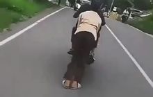 Dalam video singkat ini terlihat seorang anak yang dibonceng temannya memakai Yamaha Vega R dengan cara yang tidak biasa.