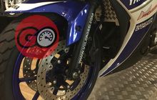 Biar kaki-kaki depan Yamaha YZF-R25 kamu makin 'berisi' dan pengereman makin pakem, solusinya tinggal pasang pelek lebar dan double disc.
