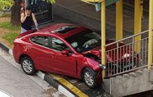 Brak! Gara-gara Kecoa, Mobil Ini Tabrak Tangga Jembatan
