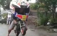 Ngakak...Biker Ngebut Pakai Helm Gede Banget Goyang-Goyang