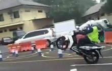 Uniknya aksi berani pembalap road race Adi Bontot dilakukan di area tes praktik SIM C.