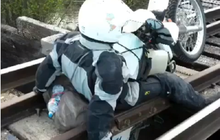 Sedang Asik Riding Menyusuri Jalur Kereta, Biker Ini Malah Terjepit