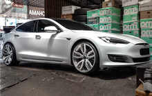 Tesla termasuk mobil yang jarang dijumpai di Indonesia apalagi yang dimodifikasi. Kali ini kedapatan 1 unit Tesla S yang baru saja ganti pelek.