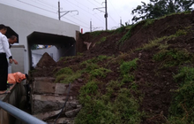 Telah terjadi longsor di jalan Parimeter Selatan, Bandara Soekarno Hatta, Tanggerang, Banten, Senin (5/2).
