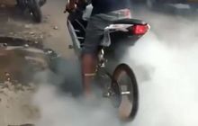 Sadis, Ninja 250 Pakai Ban Cacing Diajakin Burn Out, Lihat Videonya