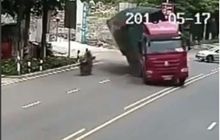 Ajaib! Pemotor Ini Nyaris Jadi Korban Tumpahan Pasir Truk Tronton, Pengemudi Mobil Sedan Malah Cuek Bebek