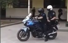 Dua petugas ini tengah berlatih dengan motor gede. Kabarnya ini motor baru yang dijadikan sarana praktik. Tampak keduanya melaju perlahan