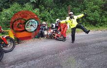 Asli, bikers yang satu ini memang kocak, meski motornya mahal tapi terlihat santai ketika tersungkur ke aspal saat turing ke Danau Toba.