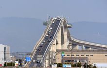 Pernah melihat jembatan yang menanjak langsung setinggi ini? Di Indonesia sepertinya tidak ada jembatan dengan konstruksi seperti ini ya.