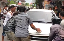 Parkir di Tengah Jalan Toyota Agya di Gotong Warga, Untung Mobilnya Enteng