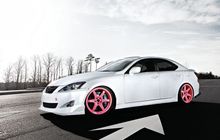 Modifikasi Lexus LS 350 lansiran 2006 dengan gaya clean look dan pelek Volk warna pink, dan body kit