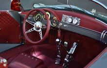 Tampilan kabin replika Porsche 356A Speedsters dengan balutan warna merah dan aksesoris klasik serta audio kekinian