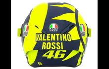 Valentino Rossi memamerkan helm barunya yang katanya ia telah melihat helm F1 yang ikonik, maka hasilnya seperti ini, klasik.
