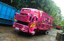 Modifikasi truk Isuzu dengan seri Giga NMR 71 yang berubah tampilanya jadi ala Scania dengan kelir yang ngejreng dan hidraulik
