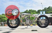 custom bike boardtracker Kromwork yang mengkilap dengan mesin Cleveland Cyclewerk Heist yang dibangun dari bahan full stainless