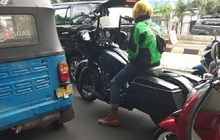 Naik Harley, Pria Pakai Atribut Ojek Online Ini Tarik Perhatian